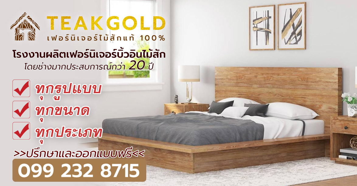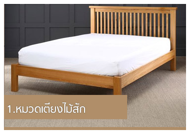 เตียงไม้สักทึบลูกฟักตรง รหัส 030 (Flat bed, a square head.)